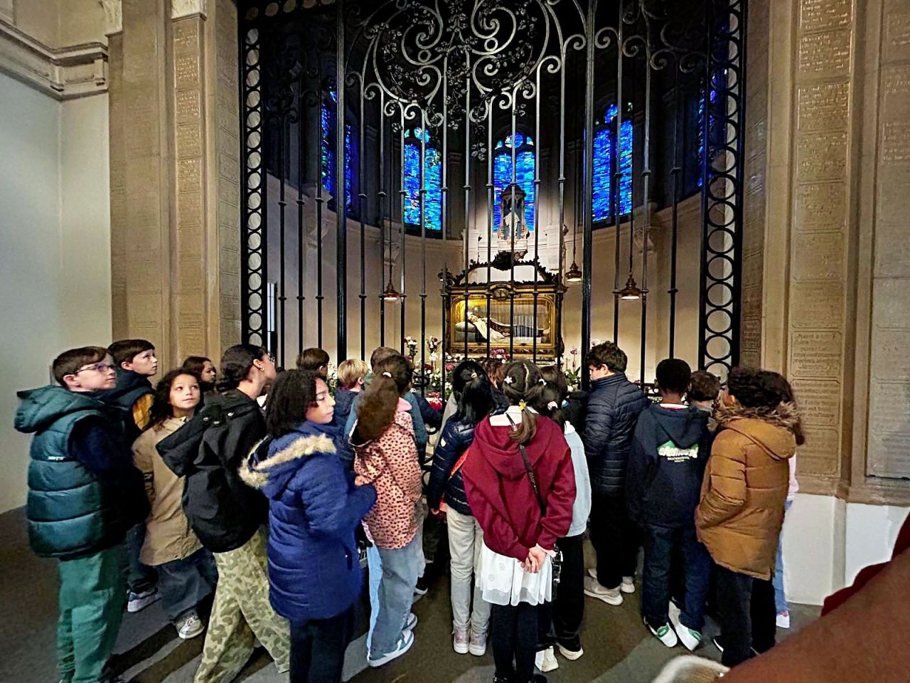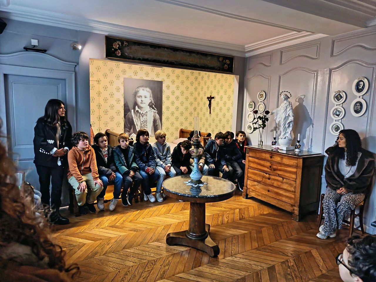 La journée a débuté par la visite des Buissonnets, la maison d’enfance de Thérèse. Les élèves y ont découvert le cadre chaleureux de sa vie familiale et ont pu imaginer le quotidien d’une enfant du XIXᵉ siècle.